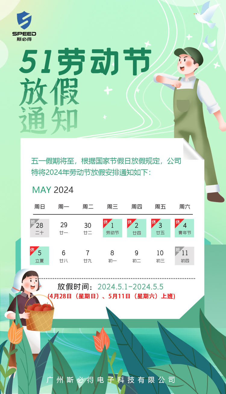 放假時(shí)間:2024年5月1日—5日 放假調(diào)休,共5天。