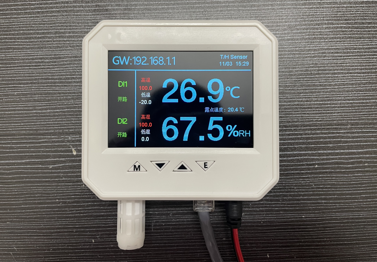 設備支持溫濕度閾值報警、開關信號變化報警,報警信息將通過顯示屏、聲光、通訊協議、web 界面、 郵件等多種方式告警,設置可以通過web 界面或傳感器按鍵進行,支持 DC12-48V 電源適配器供電 , 同時支持 POE 供電 ,不需使用 POE 分配器,設備支持 DC12V 對外供電 ,當使用此項功能時候 ,需使用高于 DC15V 電源為傳感器供電。